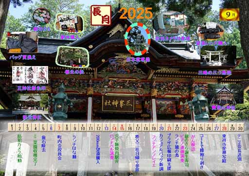2025年9月のダイアリ ------------------------------------- 02 防犯カメラ始動 04 ミニ菜園収穫終了 05 歯石除去 07 町内役員会 09 ランチはな膳 12 28-200広角望遠レンズ購入 14 ハンドベル演奏 14 穴子飯駅弁 16 熊野詣10/17分日帰り199百円催行中止残念 17 秩父三社日帰り参拝 19 ランチアンソレイエ 20 カジュアルバッグ購入 21 プラザ広報部印刷支援 22 ランチ籠の鳥 23 プラザでピアノ連弾 23 銀のさら誕生日前日寿司 24 癌検診 25 コートで右膝擦り剥き 28 東祥寺坐禅会 30 送別会カプリチョーザ ------------------------------------- |