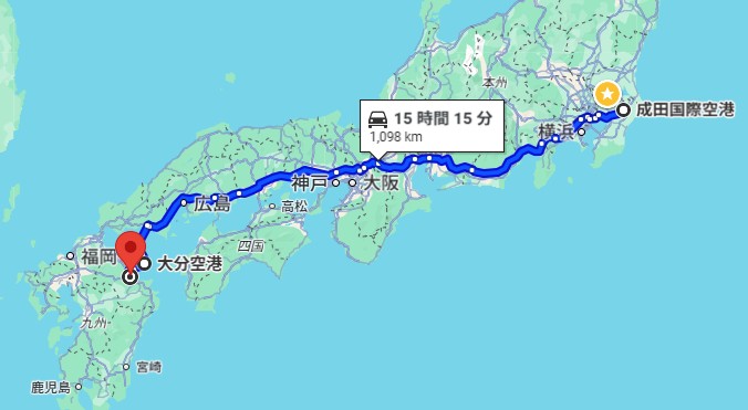 - 成田空港発GK609便7:40発ー大分空港9:50着